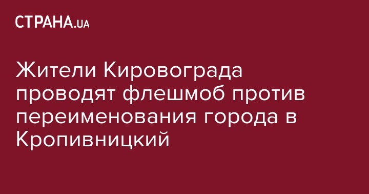 Жители Кировограда проводят в Facebook флешмоб под названием "Спроси меня, как назвать мой город". Люди публикуют фотографии с табличками с названием флешмоба и требуют провести независимое социологической исследование, которое определит, как нужно переименовать город в рамках принятого закона о декоммунизации.