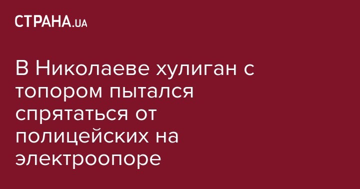 В Николаеве вооруженный секирой подозреваемый ночью пытался спрятаться от прибывших на вызов полицейских на электроопоре. Он был задержан.