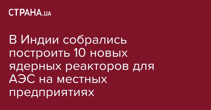 В Индии собрались построить 10 новых ядерных реакторов для АЭС на местных предприятиях
