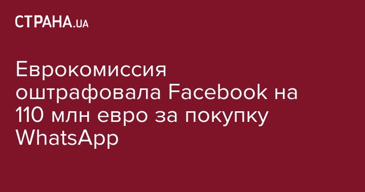 Европейская комиссия оштрафовала Facebook на 110 млн евро, потому что интернет-компания якобы ввела ЕК в заблуждение при покупке сервиса по обмену сообщениями WhatsApp в 2014 году. Об этом сообщила еврокомиссар по вопросам конкуренции Вестагер, передает Deutsche Welle