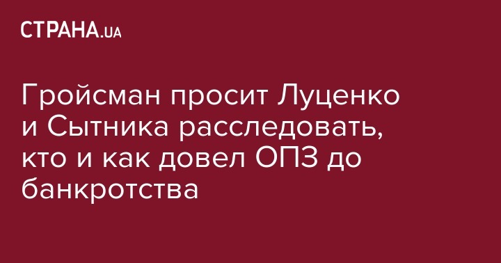 Гройсман просит правоохранителей "провести соответствующие расследования, защитить интересы государства и не допустить искусственного банкротства публичного акционерного общества ОПЗ - одного из крупнейших предприятий химической отрасли страны".