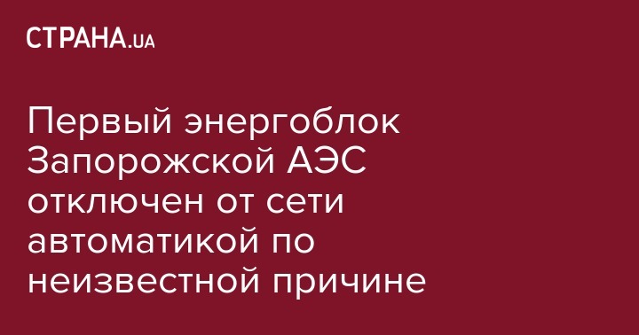 Первый энергоблок Запорожской АЭС отключен от сети автоматикой по неизвестной причине