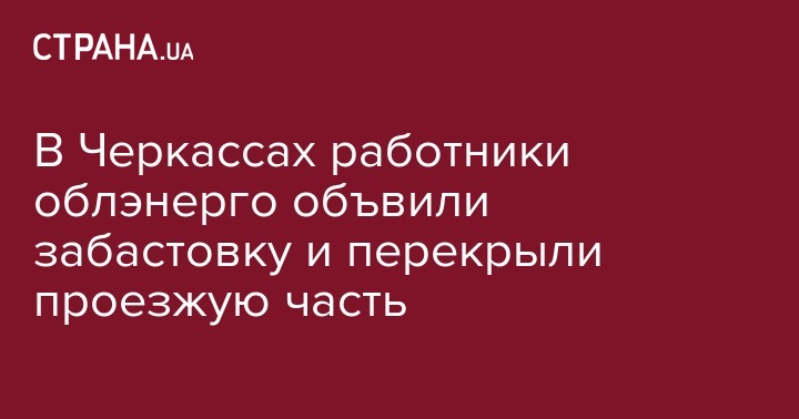 "15 мая состоялось собрание трудового коллектива аппарата управления ПАО "Черкассыоблэнерго" , в результате которого работниками принято решение об объявлении с 23.05.2017 года бессрочной забастовки, в ходе которого будет проведена однодневная предупредительная забастовка, а дальнейшие забастовочные действия будут определяться забастовочным комитетом по согласованию с трудовым коллективом. Все работы, в том числе и неотложные, будут выполняться по согласованию с забастовочным комитетом соответствующего структурного подразделения", - отмечается в сообщении.