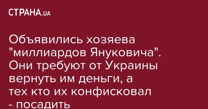 Объявились хозяева "миллиардов Януковича". Они требуют от Украины вернуть им деньги, а тех кто их конфисковал - посадить