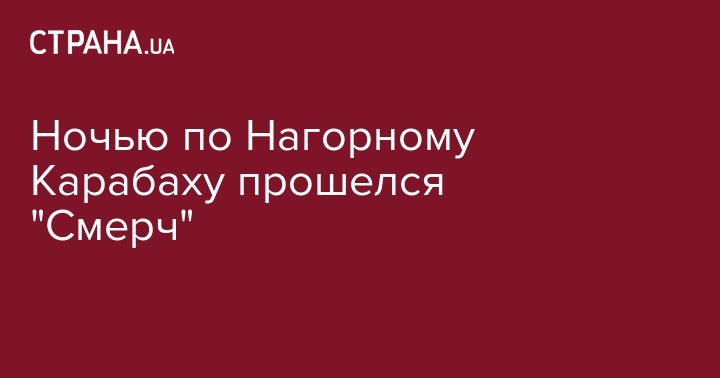 Реактивную систему залпового огня "Смерч" применили в ночь на вторник Вооруженные силы Азербайджана в зоне карабахского конфликта. Об этом "Интерфаксу" заявили в пресс-службе Минобороны непризнанной Нагорно-Карабахской республики. Согласно сообщению, "противник этой ночью продолжил обстрел населенных пунктов и боевых позиций, применение беспилотников по всей протяженности линии соприкосновения".