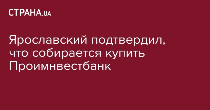 Ярославский подтвердил, что собирается купить Проимнвестбанк