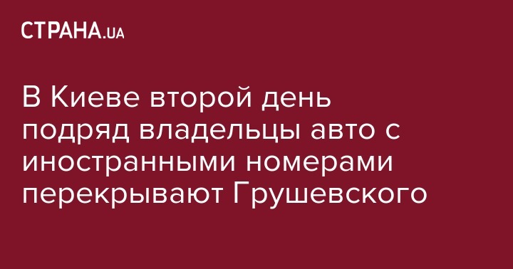 Активисты, заблокировавшие улицу, требуют отозвать из парламента законопроект о введении платы для владельцев автомобилей с иностранными номерами. Указано, что в мероприятии принимают участие около двух сотен активистов.