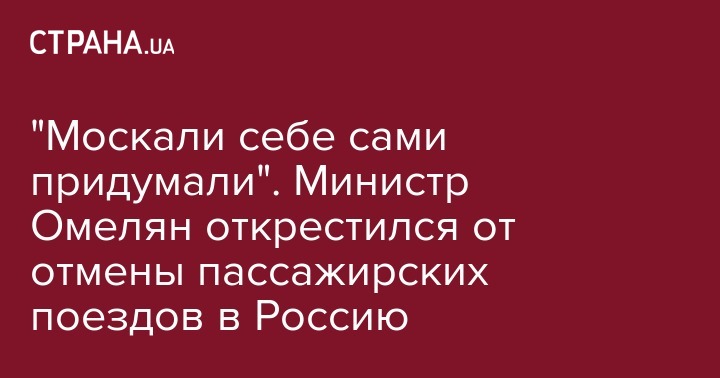 "Нет, министерство не планирует прекращать железнодорожное пассажирское сообщение с Россией. Это москали сами себе что-то придумали", - заявил "Стране" Омелян.