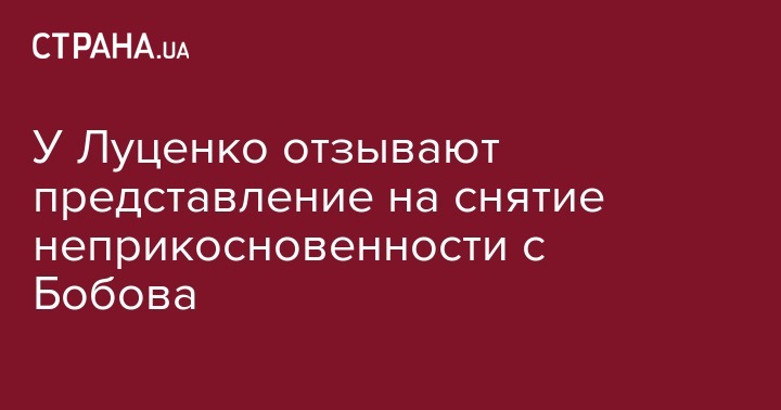 Генеральная прокуратура Украины отзовет представление на снятие депутатской неприкосновенности с народного депутата Геннадия Бобова после решения следователя о прекращении производства. Об этом на своей странице в Facebook написала пресс-секретарь Генерального прокурора Лариса Сарган.