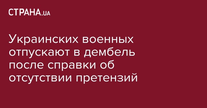 Справку о том, что военные Вооруженных Сил Украины (ВСУ) не имеют претензий к военной части им предлагают подписывать командиры. Об этом во время брифинга заявил замначальника управления морально-психологического обеспечения главного управления по работе с личным составом ВСУ Виталий Голота, сообщает Лига-Бизнес Информ.