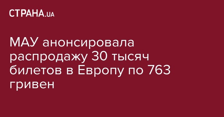 Международные авиалинии Украины (МАУ) проведут распродажу более 30 000 билетов в Европу из-за введения безвизового режима с ЕС. Об этом сообщает avianews.com.
