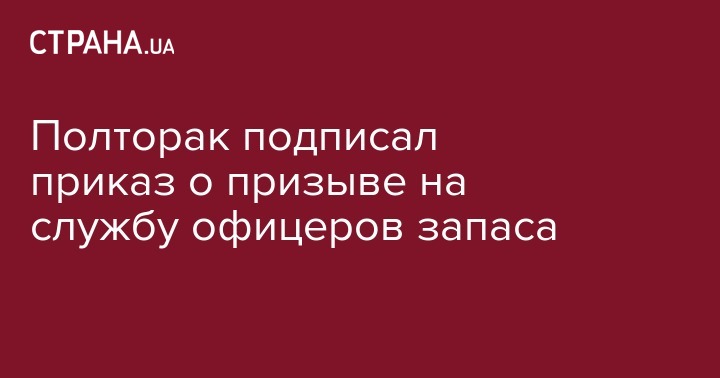 "Пять минут назад я получил информацию, что министр подписал приказ о призыве офицерского запаса на военную службу по призыву. Теперь приказ будет отправлен в Минюст. Срок призыва составляет 18 месяцев", - сообщил Аретеменко.