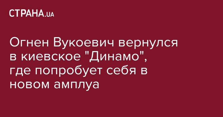 Огнен Вукоевич вернулся в киевское "Динамо", где попробует себя в новом амплуа