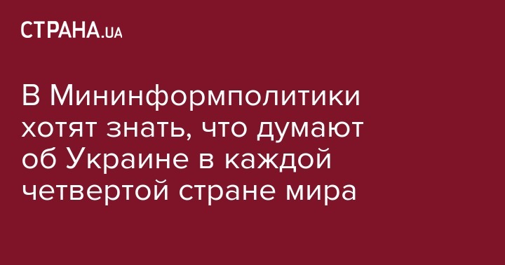 Министерство информационной политики намерено объявить тендер на проведение социологического исследования по восприятию Украины в 50 странах мира. Об этом государственный секретарь Мининформполитики Артем Биденко сообщил в эфире "5 канала", передают Украинские новости.