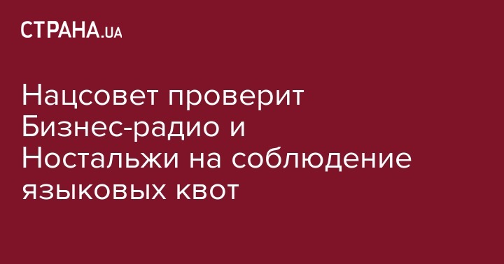 Нацсовет по вопросам телевидения и радиовещания назначил внеплановые проверки ТРК "Бизнес-радио", Radio Nostalgie и "Буковинська хвыля" из-за невыполнения языковых квот. Об этом говорится на сайте Нацсовета.