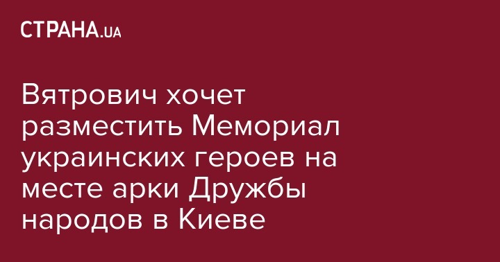 Институт Национальной памяти предложит разместить Мемориал украинских героев на месте арки Дружбы народов в Киеве. Об этом в эксклюзивном комментарии УНН сообщил председатель Института национальной памяти Украины Владимир Вятрович.