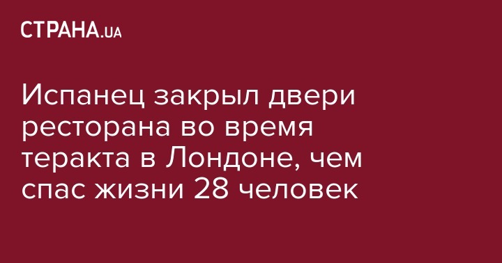 Испанец Серхио Фариньа, работающий в ресторане Лондона, во время теракта в британской столице закрыл двери в заведение прямо перед террористом, чем спас жизни 28 человек. Об этом сообщает Diariodepontevedra.