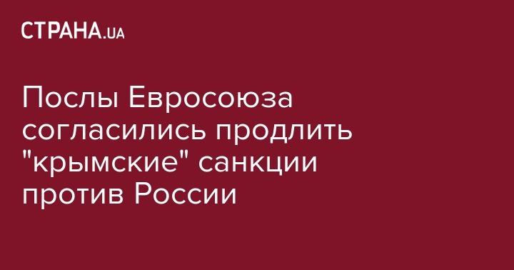 Постоянные представители Европейского Союза согласовали продолжение санкций в отношении России за аннексию Крыма в 2014 году. Об этом в Twitter сообщает брюссельский корреспондент "Радио Свобода" Рикард Йозвяк.