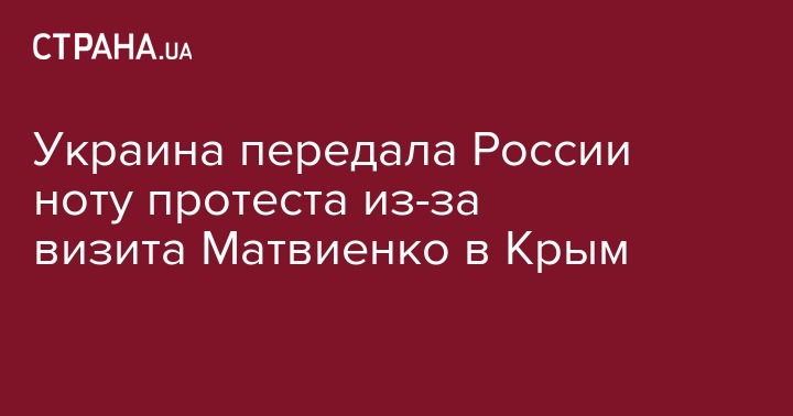 МИД Украины передало ноту протеста российской стороне из-за визита спикера Совета Федерации России Валентины Матвиенко в оккупированный Крым. Об этом сообщается на сайте ведомства.