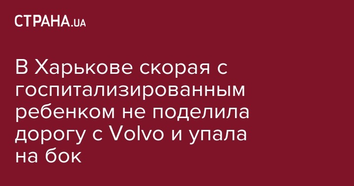 В Харькове скорая с госпитализированным ребенком не поделила дорогу с Volvo и упала на бок