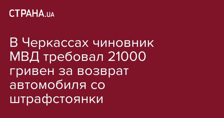 В Черкассах чиновник МВД требовал 21000 гривен за возврат автомобиля со штрафстоянки