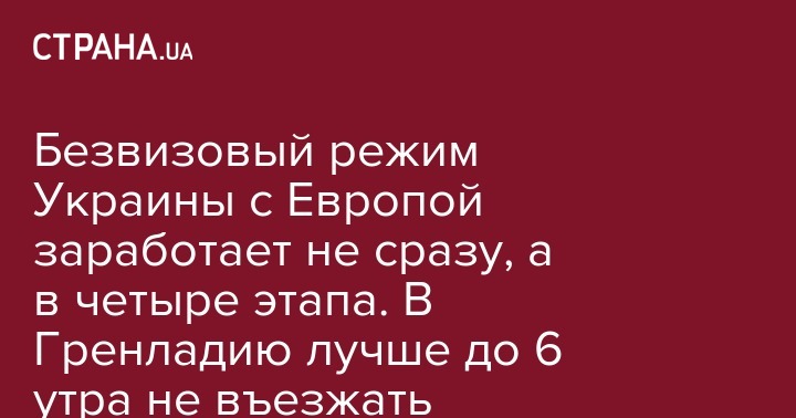 Безвизовый режим Украины с Европой заработает не сразу, а в четыре этапа. В Гренладию лучше до 6 утра не въезжать