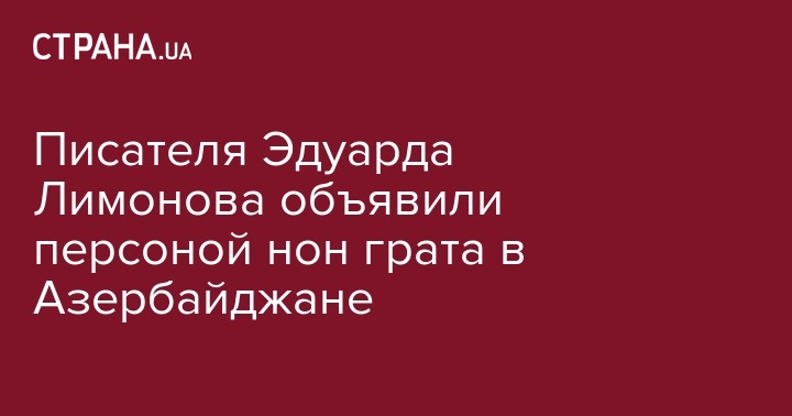 Известного русского писателя Эдуард Лимонов объявили персоной нон грата в Азербайджане. Об этом сообщает "Интерфакс".
