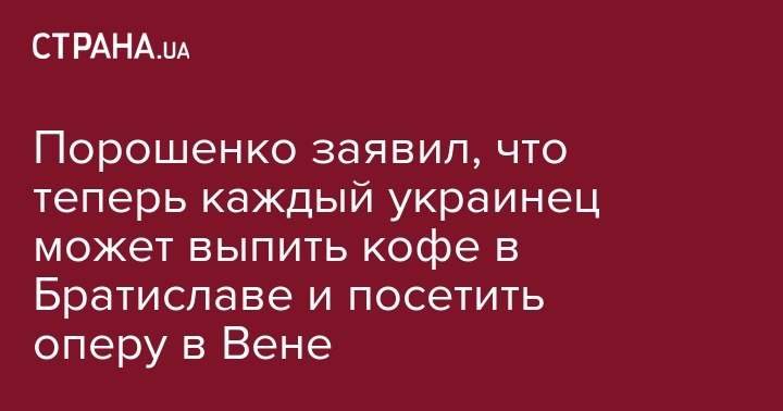 Порошенко заявил, что теперь каждый украинец может выпить кофе в Братиславе и посетить оперу в Вене