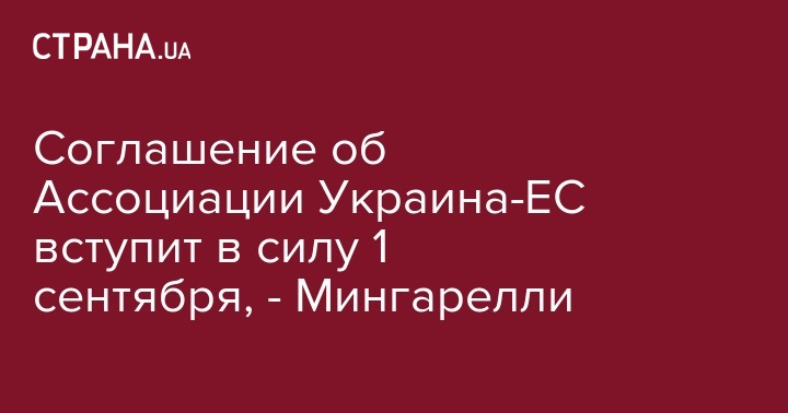 "Процесс ратификации Соглашения практически завершен. Его ратифицировали все 28 стран ЕС. С 1 сентября соглашение выйдет на стадию своей реализации", - сказал глава представительства Евросоюза в Украине Хьюг Мингарелли.