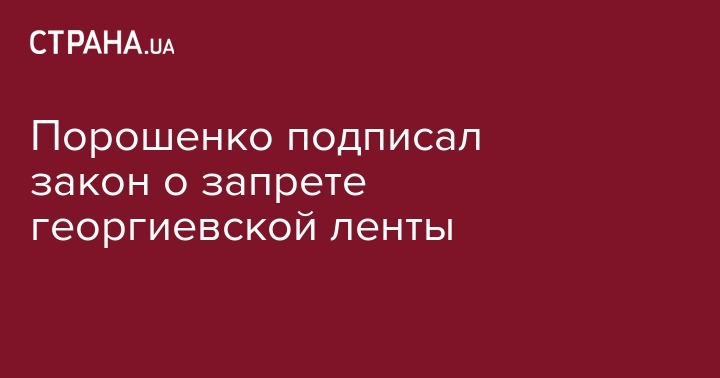 Президент Петр Порошенко подписал закон "О внесении изменений в Кодекс Украины об административных правонарушениях относительно запрета производства и пропаганды георгиевской (гвардейской) ленты". Об этом глава государства сообщил на своей странице в Facebook.