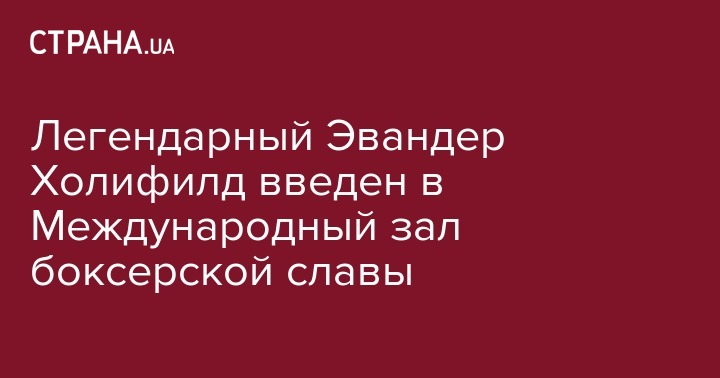 Экс-чемпион мира в супертяжелом весе североамериканский боксер Эвандер Холифилд в возрасте 54 лет был введен в Международный зал боксерской славы. Об этом сообщает официальный сайт Зала.