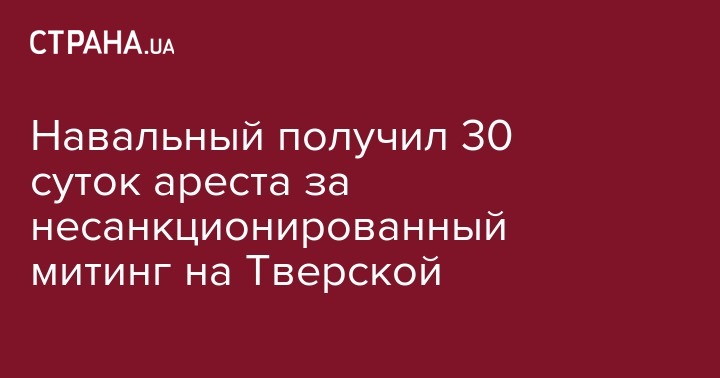 "Признать Навального виновным в совершении правонарушения, предусмотренного частью 8 статьи 20.2 КоАП (повторное нарушение установленного порядка организации или проведения собрания, митинга, демонстрации) и назначить ему наказание в виде 30 суток административного ареста", - указано в постановлении судьи Анастасии Лоскутовой.
