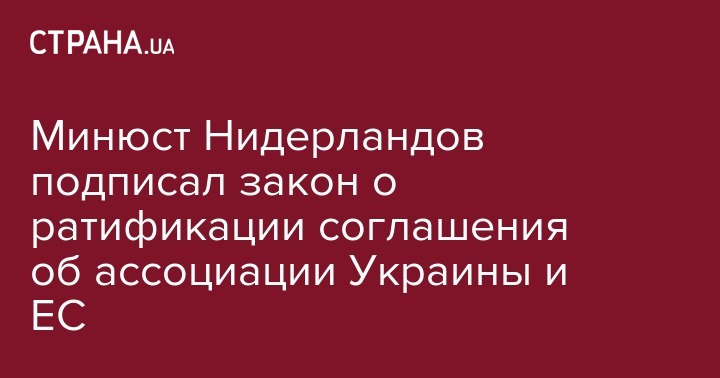 Минюст Нидерландов одобрил ратификацию Соглашения об ассоциации между Украиной и Европейским Союзом, следующим шагом должна стать публикация в Официальном журнале Нидерландов. Об этом сообщил министр иностранных дел Украины Павел Климкин.