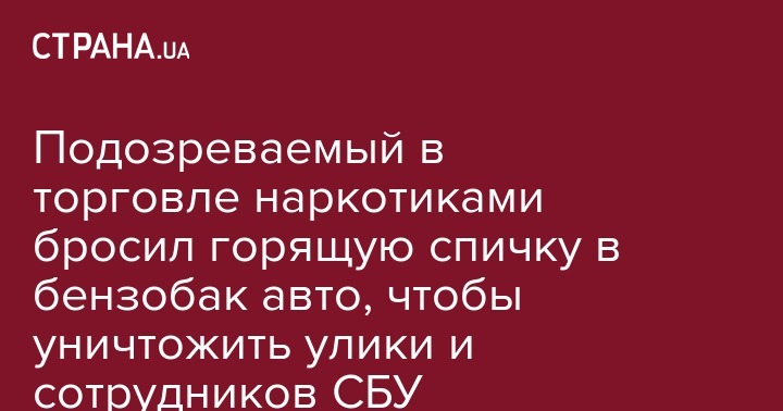 "Установлено, что с целью препятствования законным действиям сотрудников Службы безопасности Украины по выявлению и документированию доказательств противоправной деятельности мужчины, который подозревается в попытке контрабанды наркотических средств, у последнего возник умысел о совершении убийства силовиков. При осмотре правоохранителями транспортного средства, на котором подозреваемый перевозил наркотические средства, последний умышленно зажег спичку и бросил его в топливный бак, в результате чего произошло возгорание автомобиля, повлекшее угрозу жизни правоохранителей, однако, пожар удалось своевременно погасить", - говориться в сообщении.