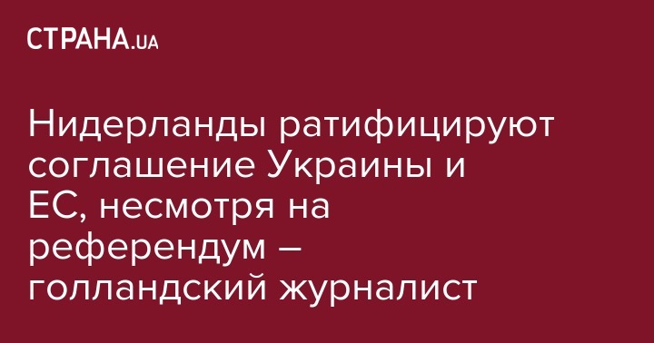 Нидерланды ратифицируют соглашение Украины и ЕС, несмотря на референдум – голландский журналист