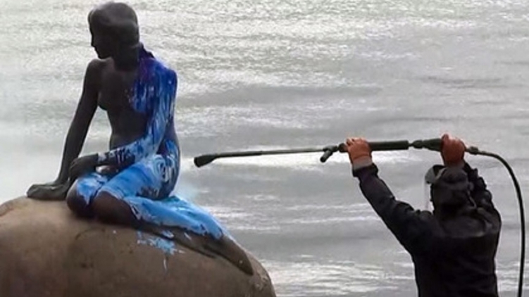 В Копенгагене (Дания) вандалы залили синей и белой краской символ города - статую Русалочки в знак протеста. Об этом сообщает местное полицейское управление на странице в Twitter.