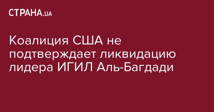 Объединенная коалиция во главе со США пока не может подтвердить информацию о ликвидации лидера ИГИЛ Абу Бакр аль-Багдади в Сирии. Об этом сообщает Reuters.