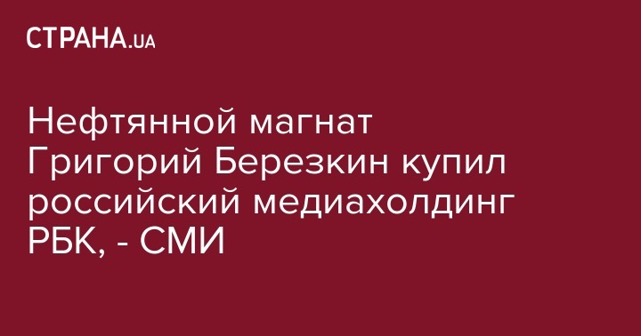 Российский бизнесмен Григорий Березкин купил российский медиахолдинг РБК. Об этом сообщает канал "Дождь" со ссылкой на несколько источников, в том числе близкие к руководству холдинга и к самой сделке.