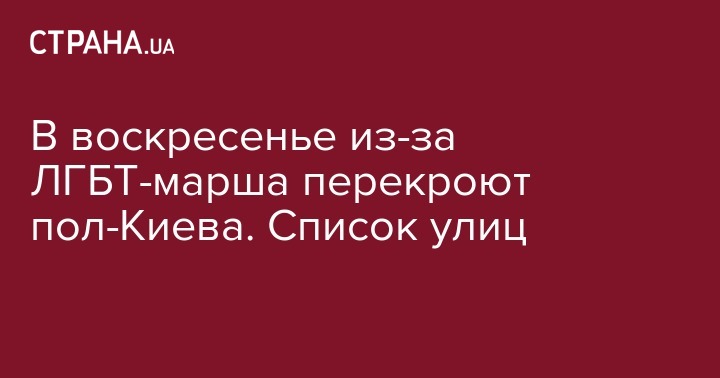 В воскресенье из-за ЛГБТ-марша перекроют пол-Киева. Список улиц