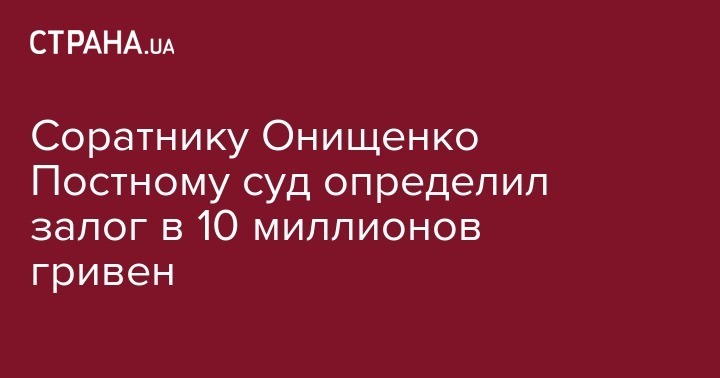 Валерию Постному, обвиняемому по "газовому делу", Соломенский райсуд Киева избрал меру пресечения в виде содержания под стражей и как альтернативу определил залог в размере 10 млн грн. Об этом сообщил прокурор Специализированной антикоррупционной прокуратуры (САП) Роман Симкив, пишет "УНН"