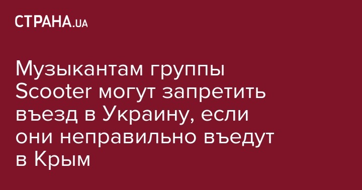 Немецкой группе Scooter запретят легально посещать Украину, если музыканты въедут на Крымский полуостров через территорию России.