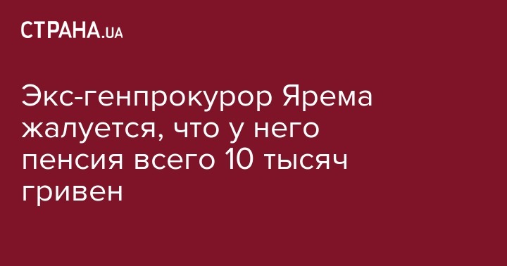 Бывший генеральный прокурор Украины Виталий Ярема рассказал о своей пенсии в размере 10 тыс. грн. Об этом сам Ярема сообщил в интервью телеканалу "112 Украина".