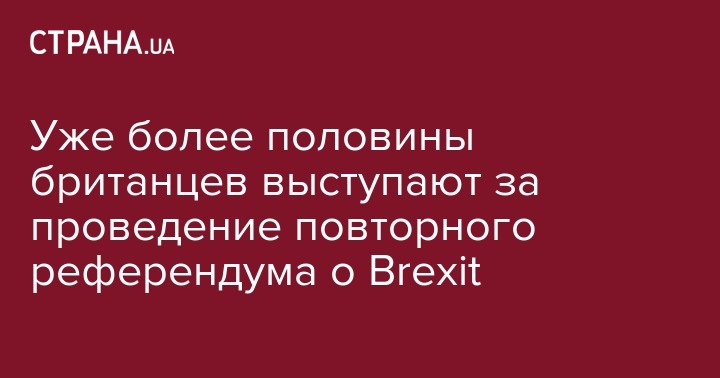 Сразу 53% опрошенных британцев проголосовали за проведение второго референдума по выходу страны из ЕС. Об этом сообщает The Independent.