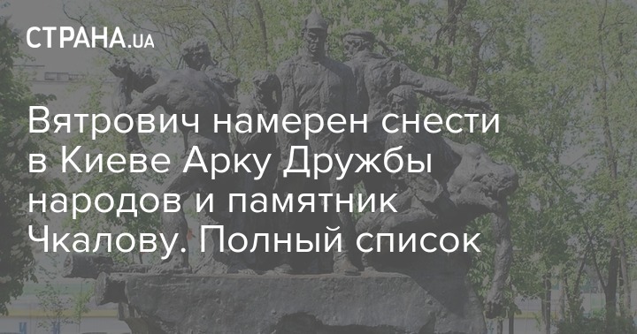 Вятрович намерен снести в Киеве Арку Дружбы народов и памятник Чкалову. Полный список