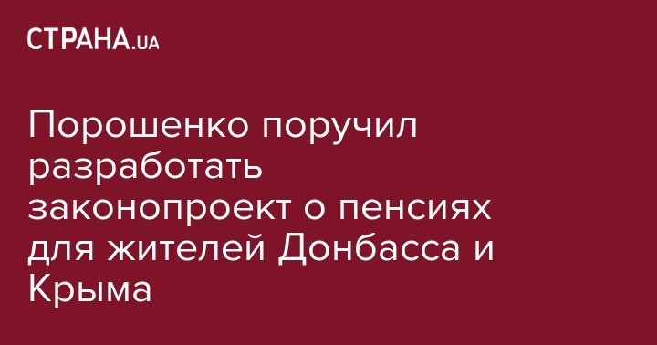 Петр Порошенко поручил Кабмину разработать законопроект о получении пенсии жителями отдельных районов Донбасса и аннексированного Крыма. Об этом сообщает УНН.