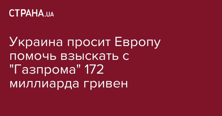 Украина намерена воспользоваться правовой помощью других европейских стран для взыскания с "Газпрома" 172 миллиардов гривен. Об этом сообщает "Интерфакс-Украина".