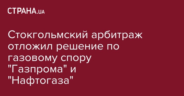 Трибунал при Арбитражном институте Торговой палаты Стокгольма планирует отложить решение по транзитному спору "Газпрома" и НАК "Нафтогаз Украины", сообщил директор по юридическим вопросам НАК Ярослав Теклюк в интервью "Юридическая газета", текст которого обнародован на сайте НАК во вторник.