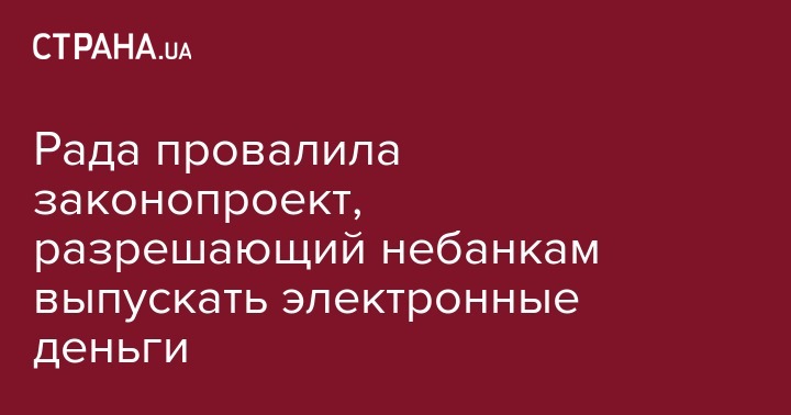 Рада провалила законопроект, разрешающий небанкам выпускать электронные деньги