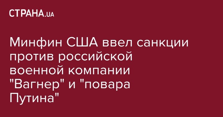 Минфин США ввел финансовые санкции против российской частной военной компании "Вагнер". Новый санкционный список появился на сайте ведомства 20 июня.
