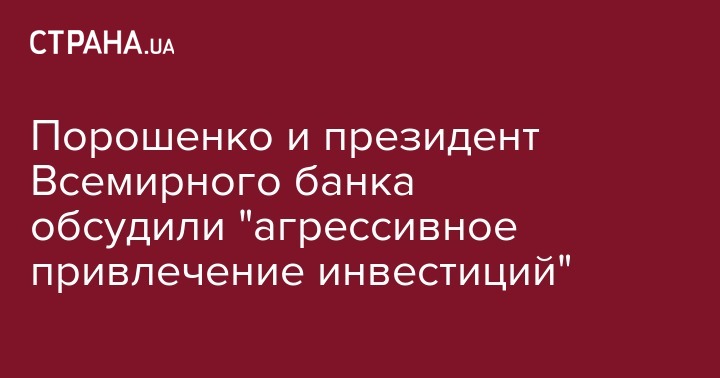 Порошенко и президент Всемирного банка обсудили "агрессивное привлечение инвестиций"